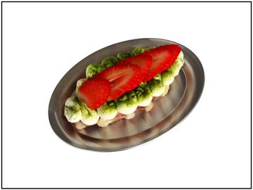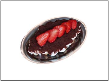 Topped with soybean powder and sweet red bean rice cake