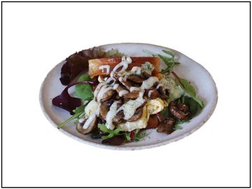 A toasted Sourdough dish featuring mushrooms seasoned in homemade Korean sauce with hummus and avocado!