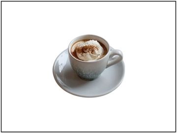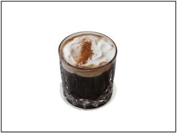 Black coffee topped special cream with cinnamon